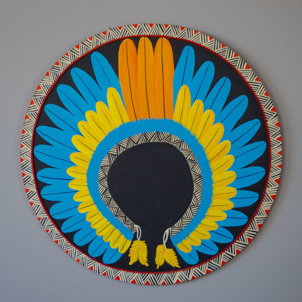 O marido Nilton corta as madeiras (com certificação) para produzir os remos, mandalas e bancos, e sua arte traz sempre um alerta: “Não compre aves silvestres e denuncie quem as comercializa”.