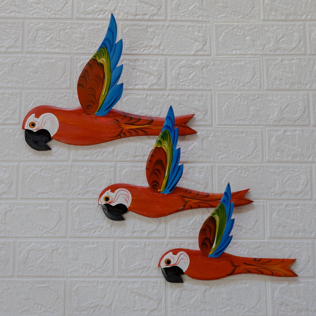 Arara Vermelha de Parede em Madeira (M)