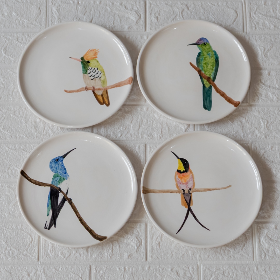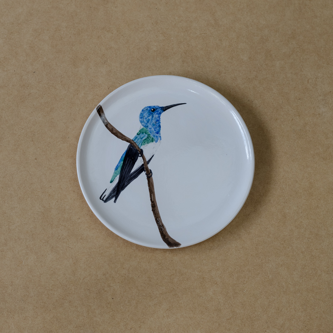 Prato de Cerâmica Beija-flor Azul de Rabo Branco (G)
