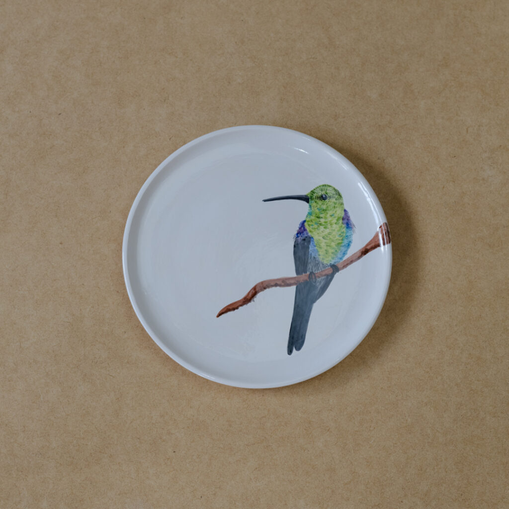 Prato de Cerâmica Beija-flor de Costas Violeta (G)