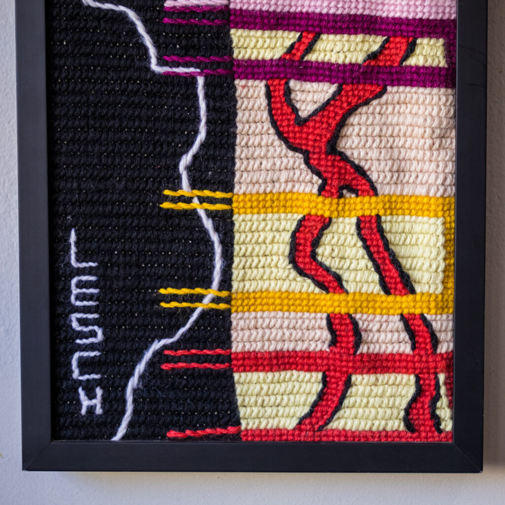 Painel em tapeçaria artística com moldura preta