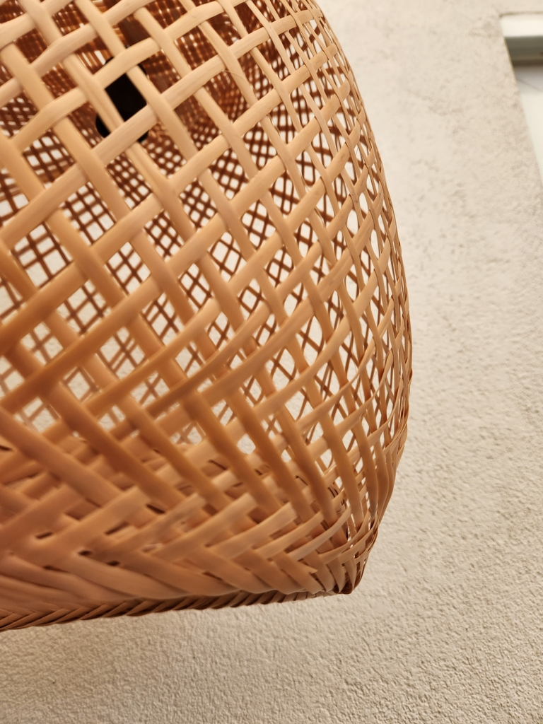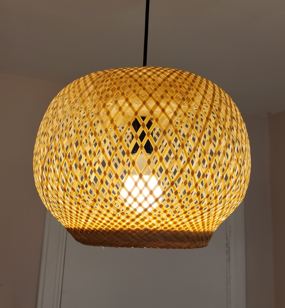 Luminária feita em fibra natural de arumã. Acompanha fio preto e soquete