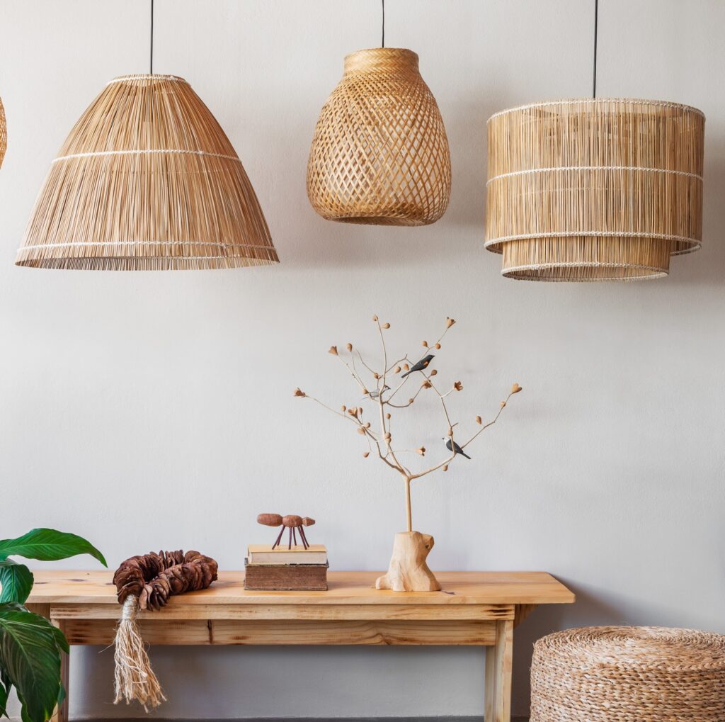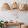 Luminária feita em talo de coqueiro, acompanha fio pendente na cor preta