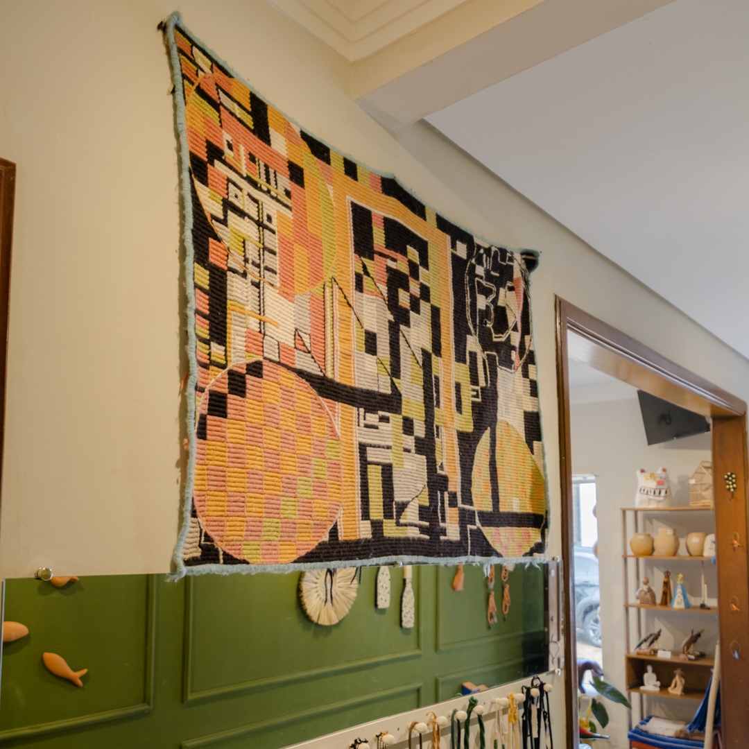 Tapeçaria artesanal feita pelo artista Adriano Lescher