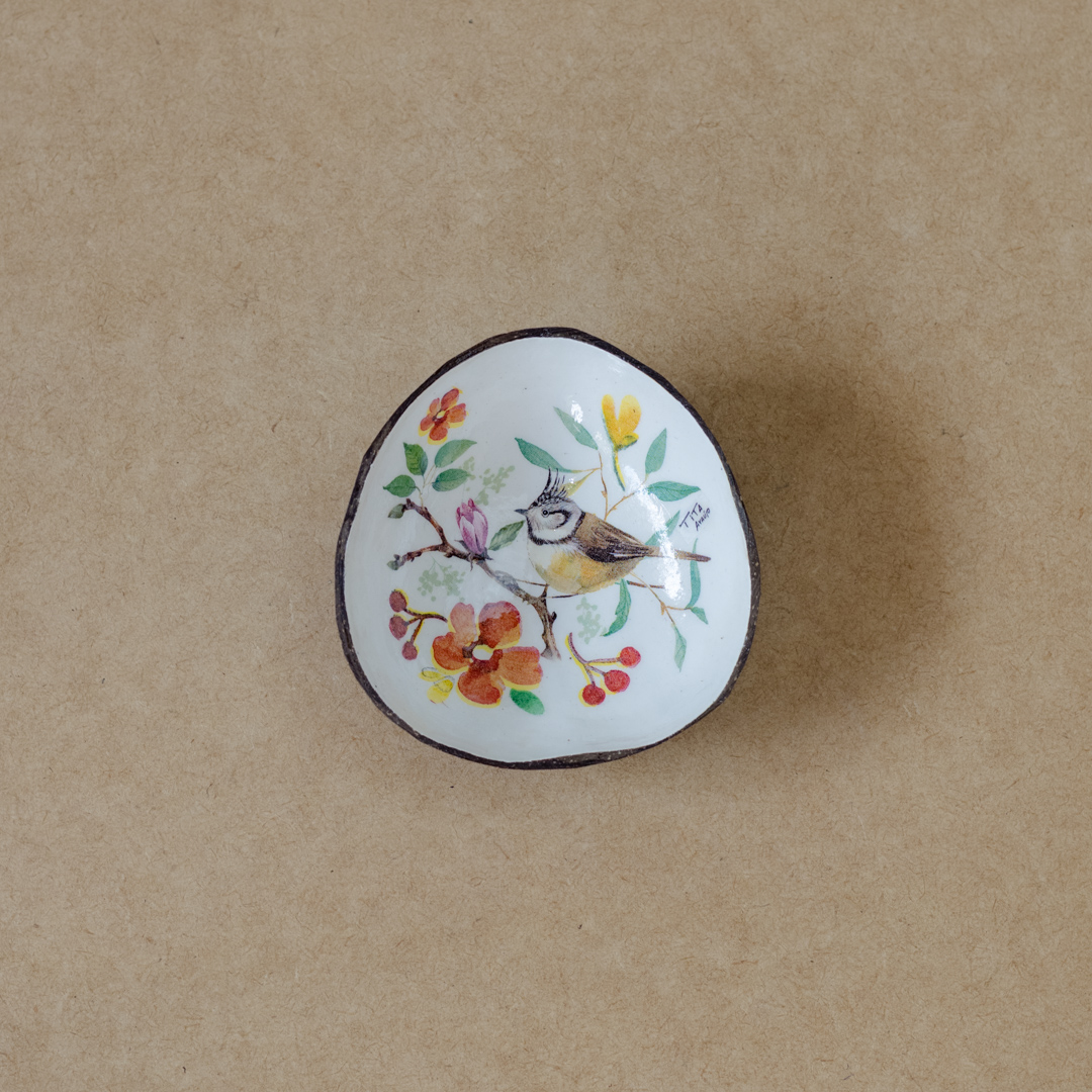 Cuia estampada feita com coco. Pode ser usada como petisqueira
