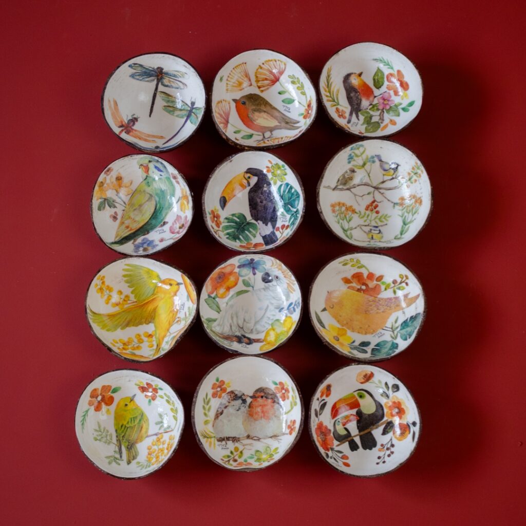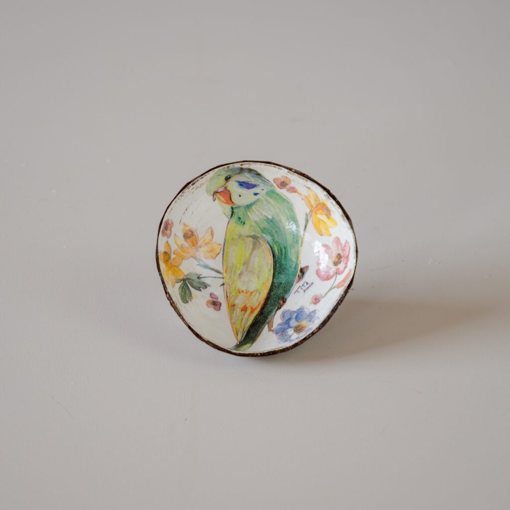 Cuia estampada feita com coco. Pode ser usada como petisqueira