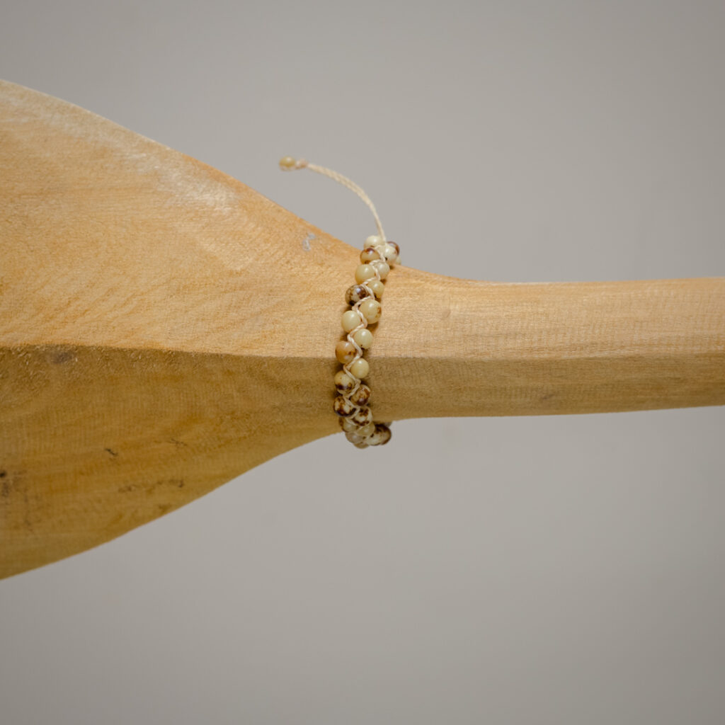 Pulseira biojóia, feita com sementes de açaí tingidas e trançadas com fio de tucum. Possui fecho regulável