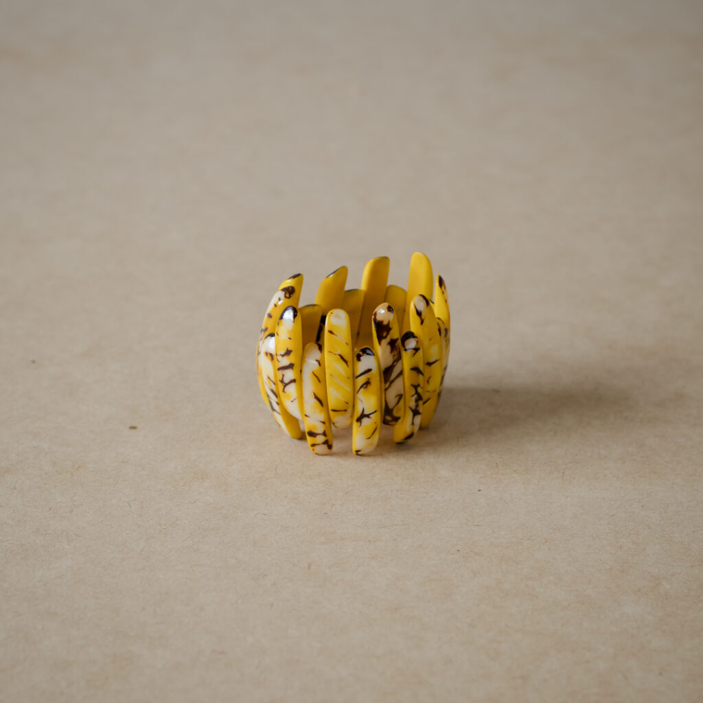 Pulseira biojóia com elástico, feita com lascas de sementes de jarina tingidas