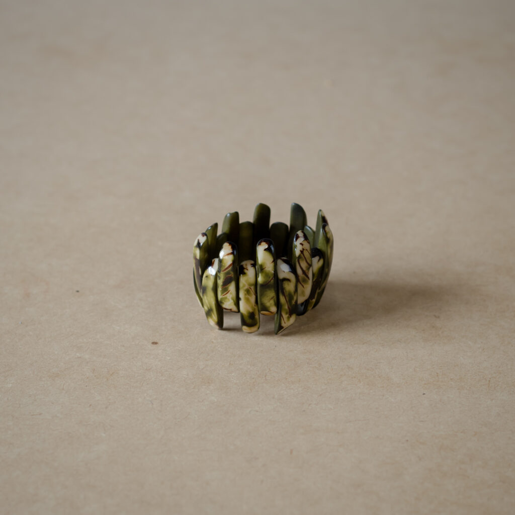 Pulseira biojóia com elástico, feita com lascas de sementes de jarina tingidas