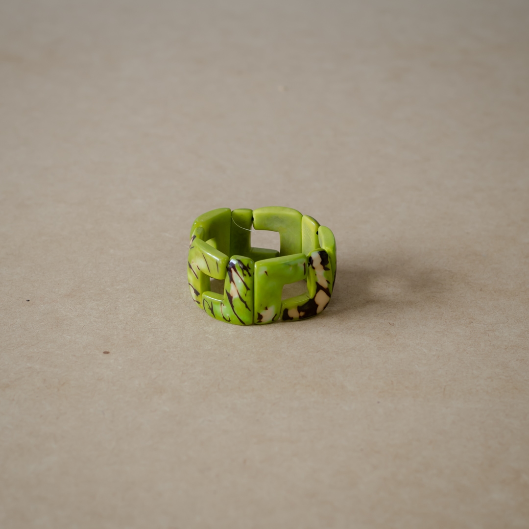 Pulseira biojóia com elástico, feita com lâminas de sementes de jarina tingidas