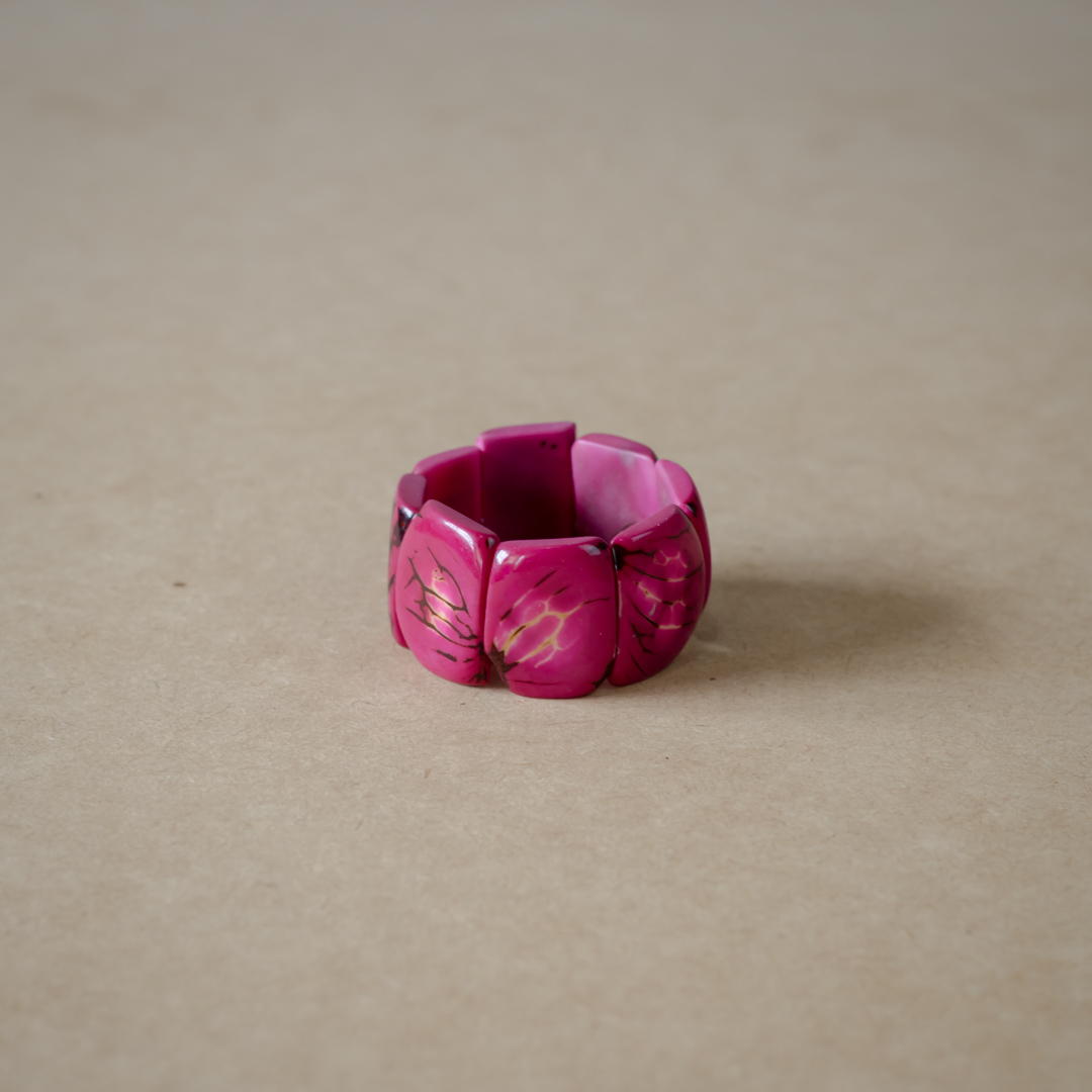 Pulseira biojóia com elástico, feita com lâminas de sementes de jarina tingidas