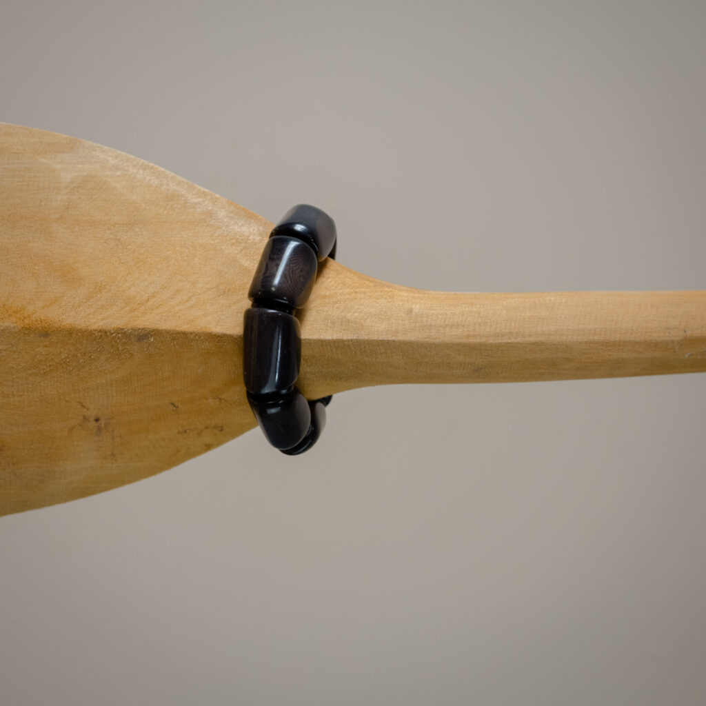 Pulseira biojóia com elástico, feita com sementes e entremeios de jarina tingidos