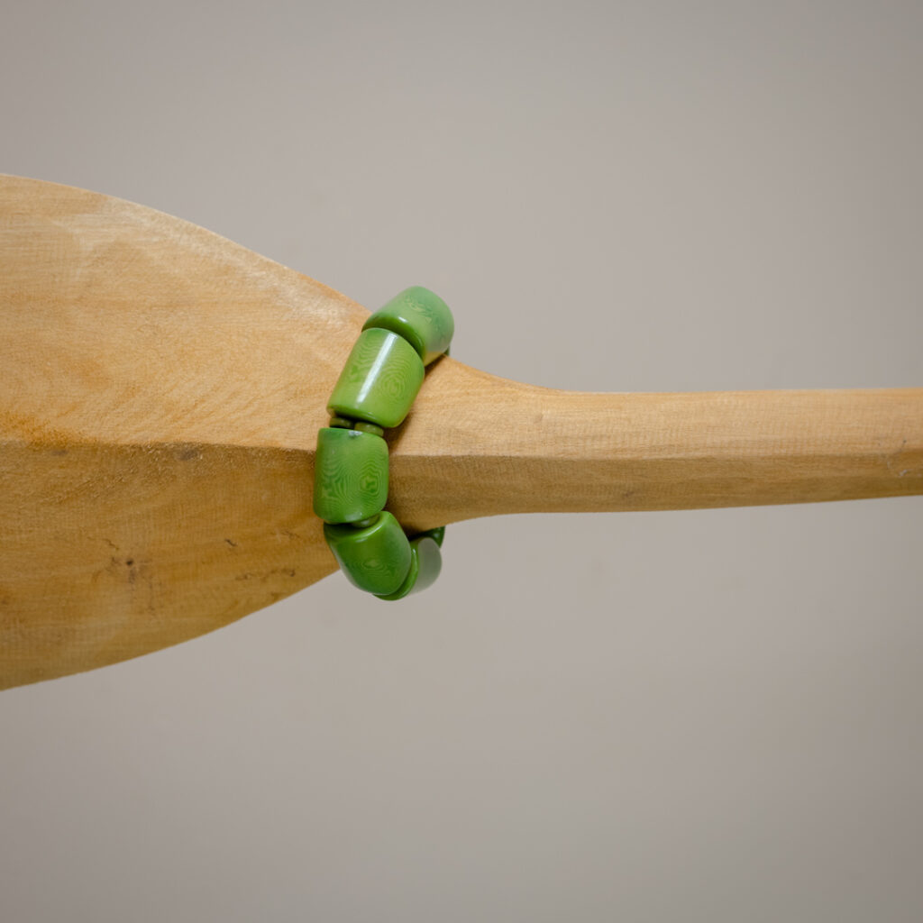 Pulseira biojóia com elástico, feita com sementes e entremeios de jarina tingidos