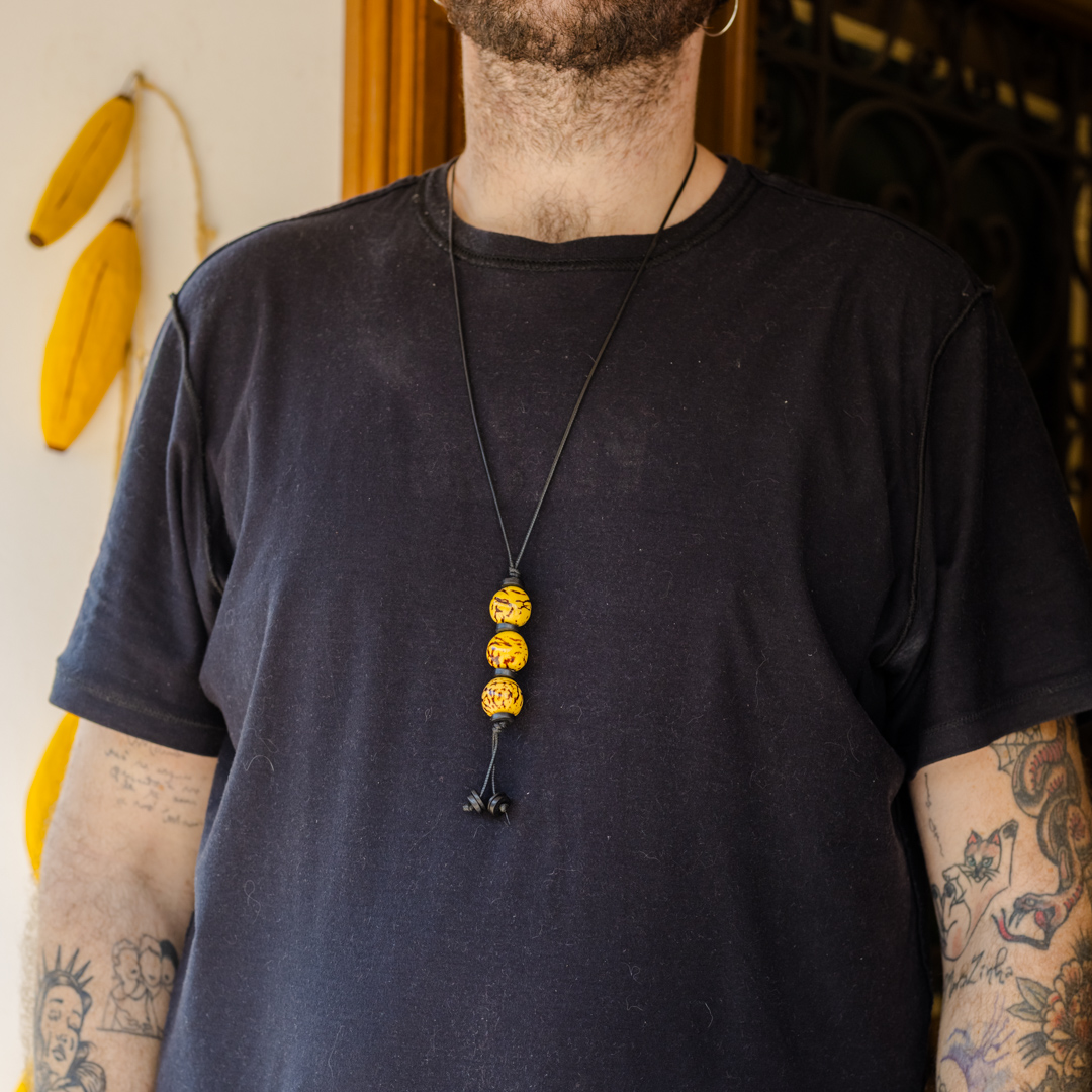 Colar biojoia feito artesanalmente com sementes de paxiuba tingidas e entremeios de coco. Possui regulagem de comprimento
