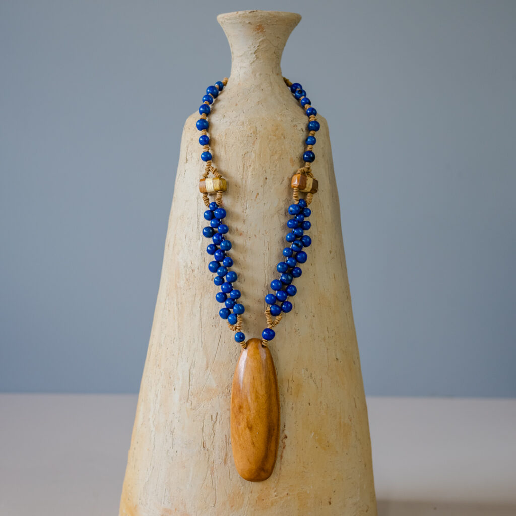 Colar Açaí e Pingente de Madeira - Azul
