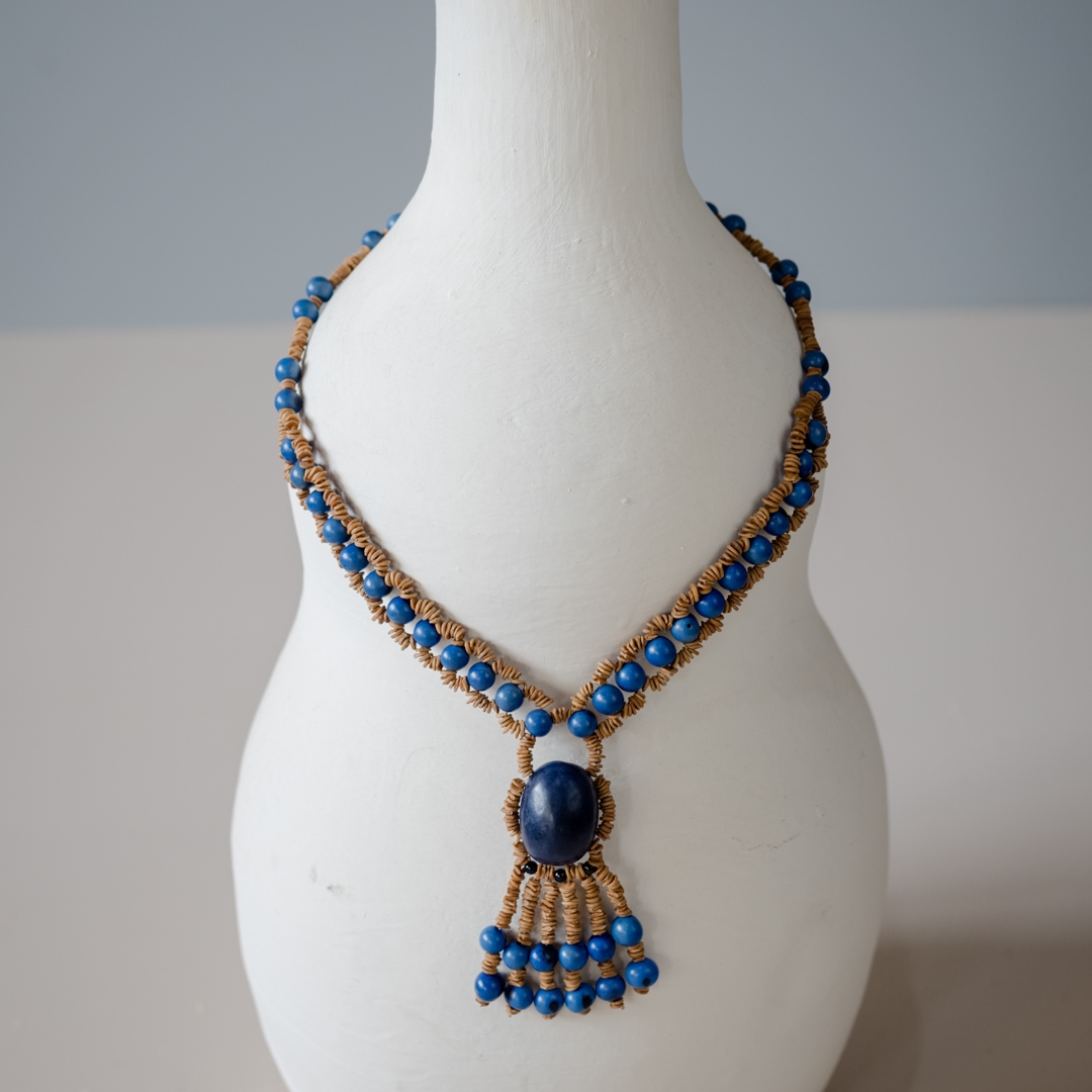Colar biojoia artesanal de sementes de açaí e morototó com pingente de jarina. Possui fecho