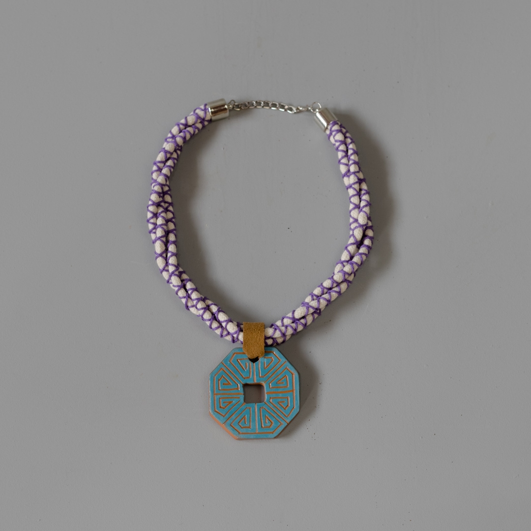 Colar Trançado Lilás - Pingente Marajoara Azul