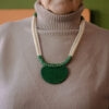 Colar biojóia feito em cordas de algodão tingidas com café, e pingente de cerâmica ou madeiraTamanho: 27 cm