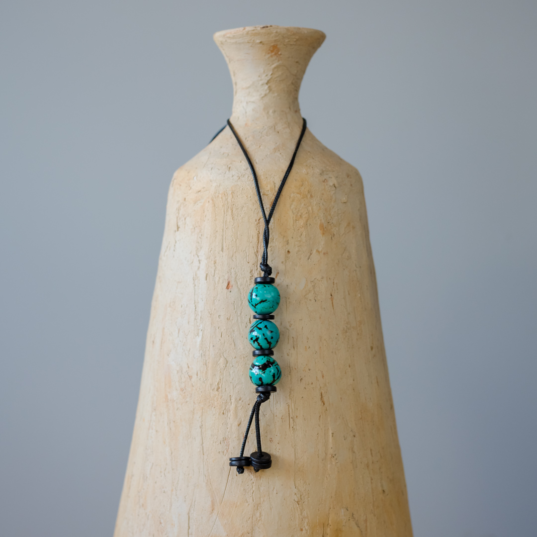 Colar biojoia feito artesanalmente com sementes de paxiuba tingidas e entremeios de coco. Possui regulagem de comprimento