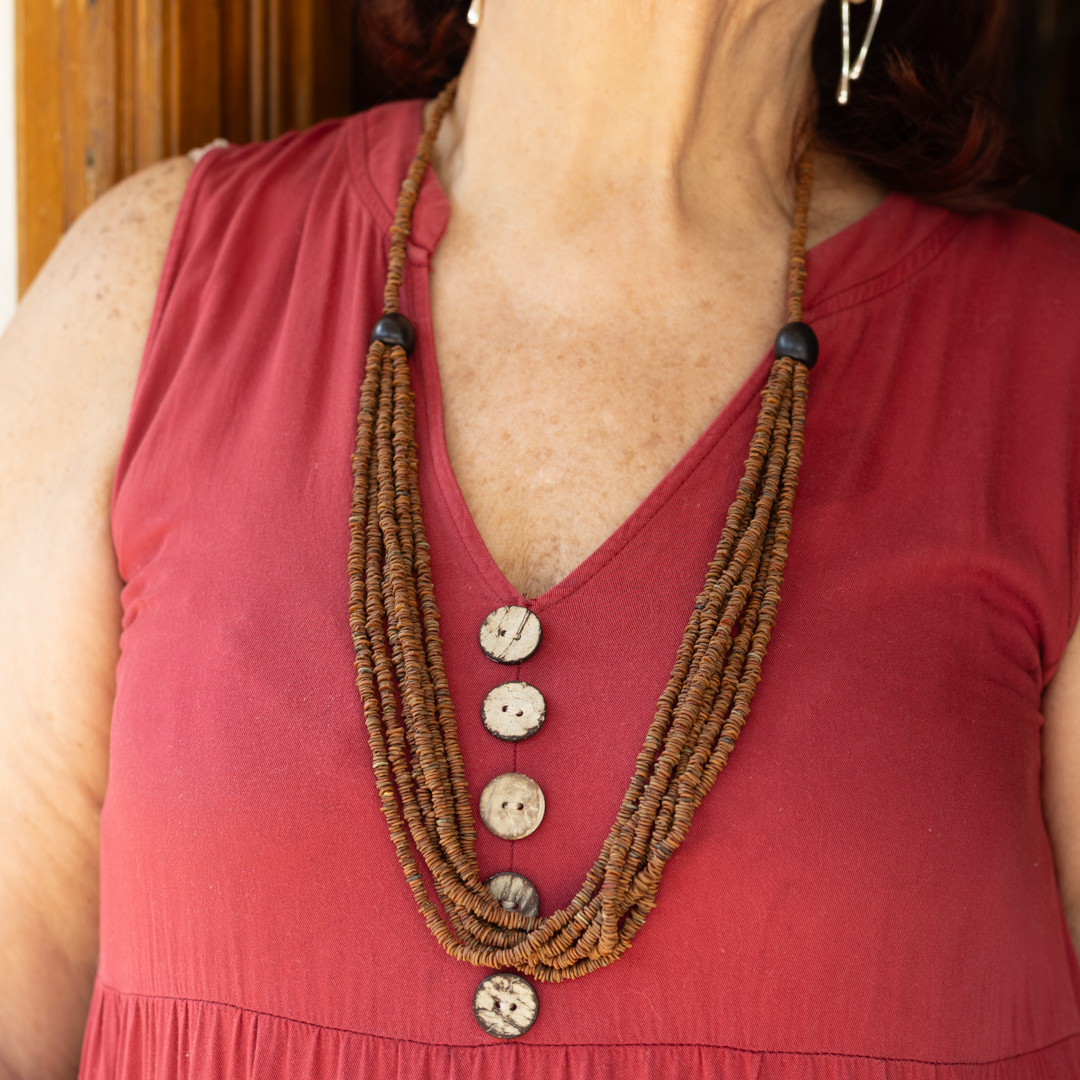 Colar biojoia feito manualmente com sementes de morototó tingidas. Possui fecho