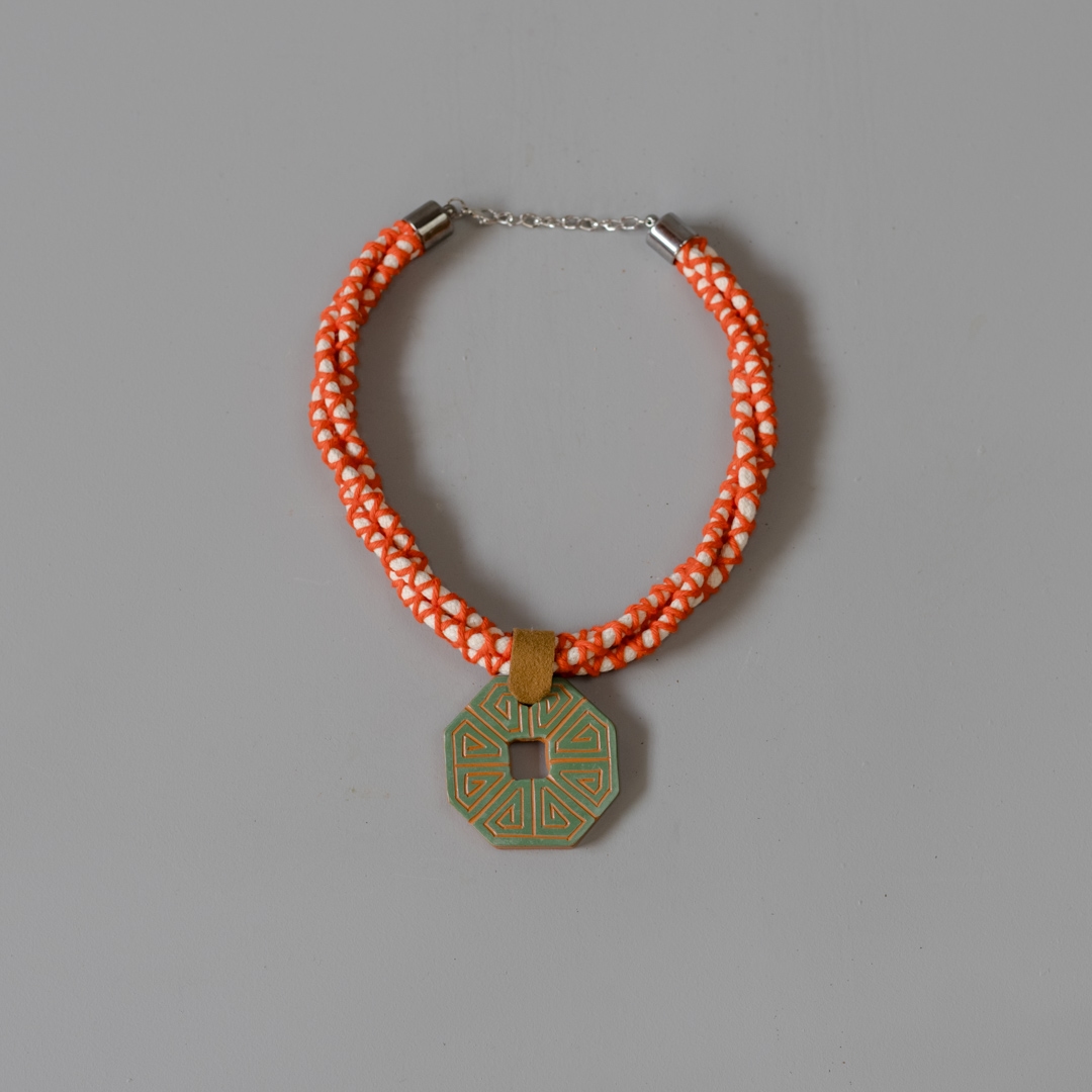 Colar Trançado Vermelho - Pingente Marajoara Verde