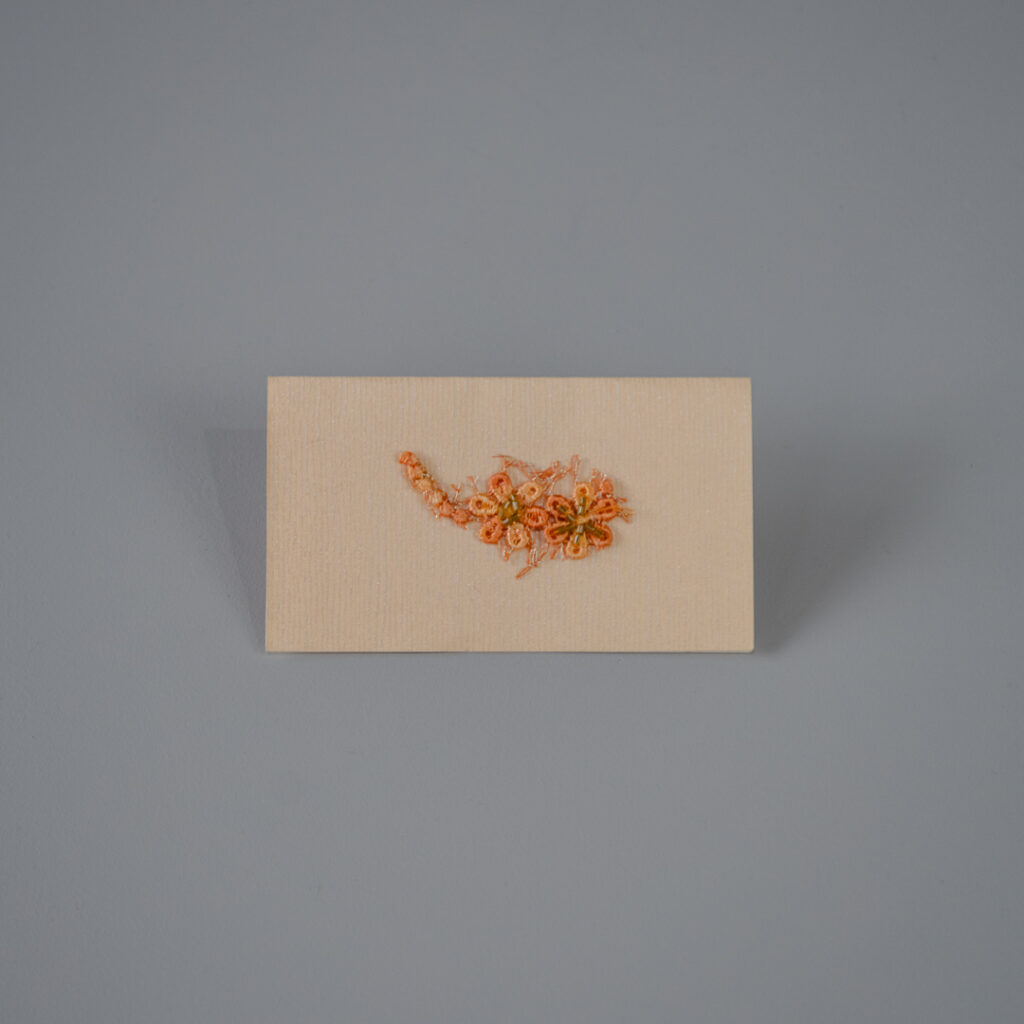 Cartão para presente feito a partir de papeis de alta qualidade, que seriam descartados do mostruário e foram reaproveitados pelas mulheres artesãs do grupo Maria Retalho