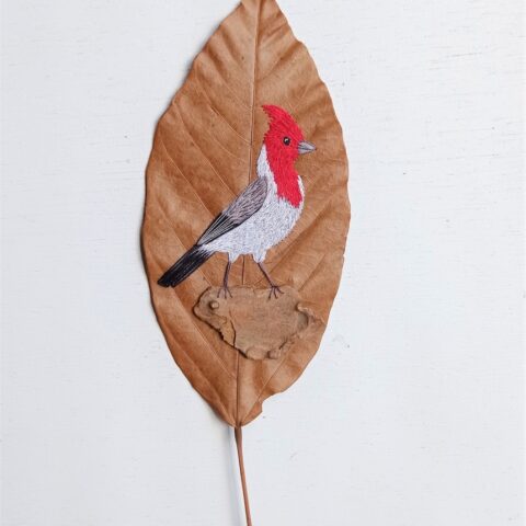 A utilização de folhas de árvores como suporte de bordados elaborados com reprodução de pássaros realistas é tão inusitada quanto delicada e o resultado são pequenas obras de arte. E aqui na Imaterial, você encontra opções de aves bordadas. Entre os destaques estão: Tangarazinho, Sabiá-Laranjeira, Tucano-Bico-Colorido, Bem-Te-Vi, Canário, Arara Azul e Arara Vermelha
